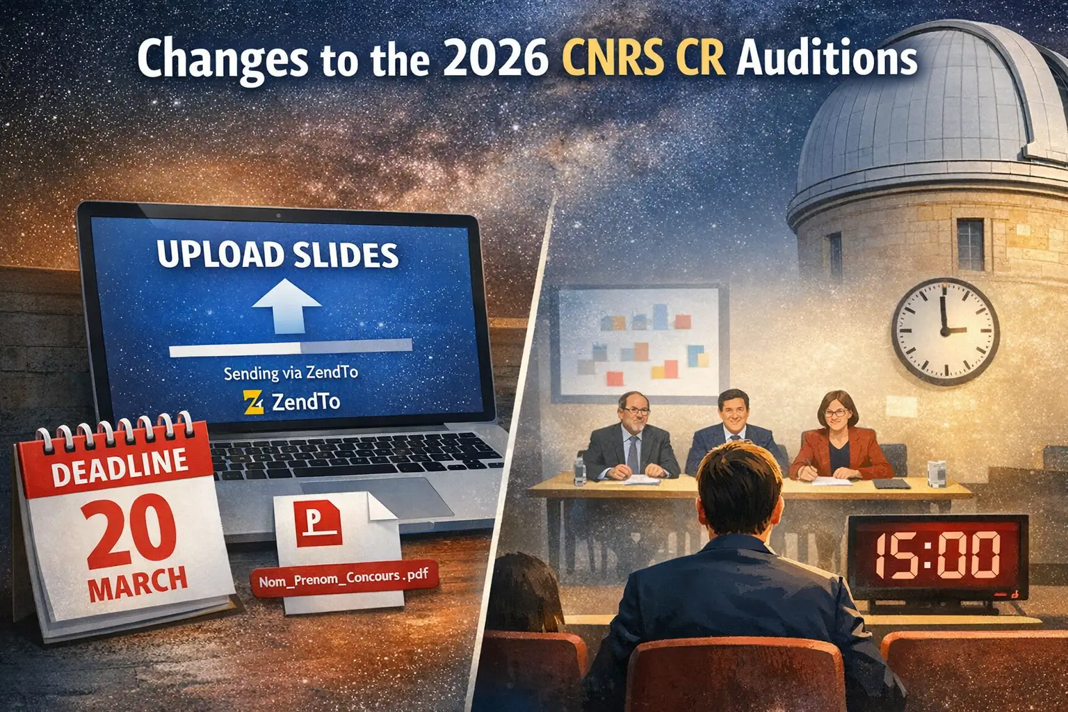 Welcome to our blog, where we explore the paths to permanent research positions in French academia, specifically within the field of astronomy and astrophysics. Here, we demystify the application processes (known as concours) for roles such as CNRS Chargés de recherche (CR) and CNAP Astronome-adjoint, offering insights into each step from initial application to final selection. Our posts aim to consolidate the information, resources, and community wisdom surrounding these highly sought-after positions. Whether you’re preparing to apply, seeking clarity on the process, or simply curious, this blog is your starting point for navigating the often complex world of French academic concours.